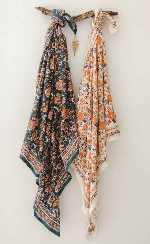 L'iconique sarong ANOKHI en voile de coton tissé main, à utiliser comme écharpe, paréo ou à admirer en nappe et rideau.